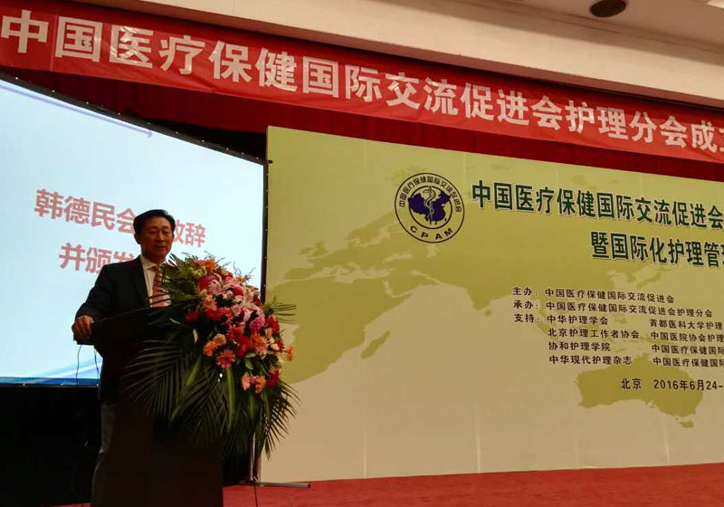 中国医促会会长韩德民对护理分会提出了几点希望并预祝护理分会走出国门,走向国际。