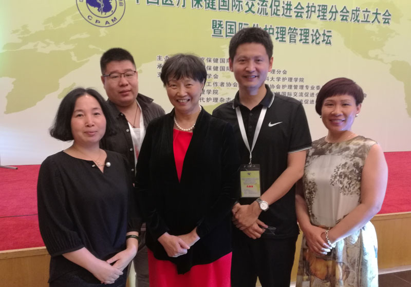 2016年6月25日,中国医疗保健国际交流促进会护理分会成立大会暨国际化护理管理论坛在北京京东宾馆隆重召开。大会选举产生了第一届委员会成员,惠州华励医疗有限公司菅冀祁博士当选为委员,并与主任委员陈晓红、秘书长王胜花等北京大学医学部老师同学们亲切合影。