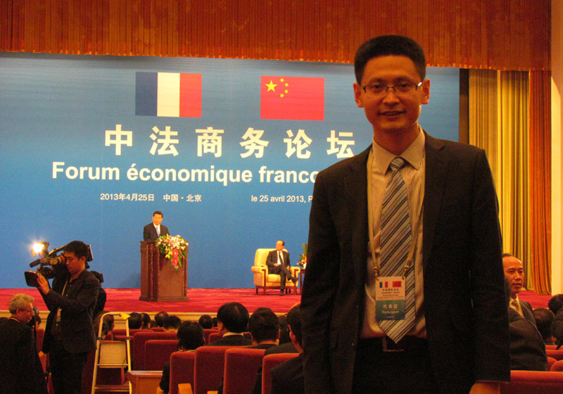 2013年4月,法国总统奥朗德携40多位法国企业家访华,菅冀祁作为中国企业代表应邀出席中法商务论坛。