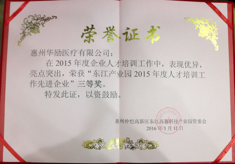 惠州东江高新区表彰人才培训先进企业 华阳集团华励医疗双双获奖