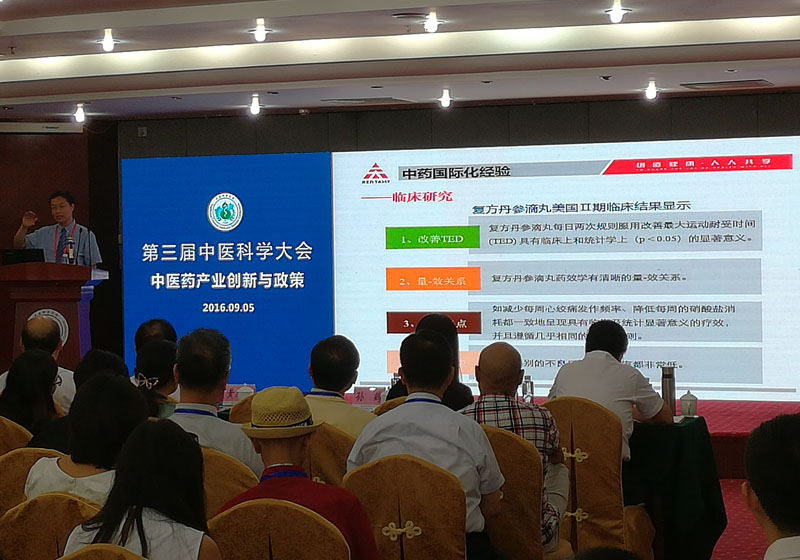 在分论坛上,程京院士、菅冀祁博士一道听取了天士力集团关于复方丹参滴丸美国临床研究及FDA注册进展的展示。对于天士力的成功经验,程京院士语重心长的分享:“民族企业市场开拓的背后是文化自信与国力强大。”