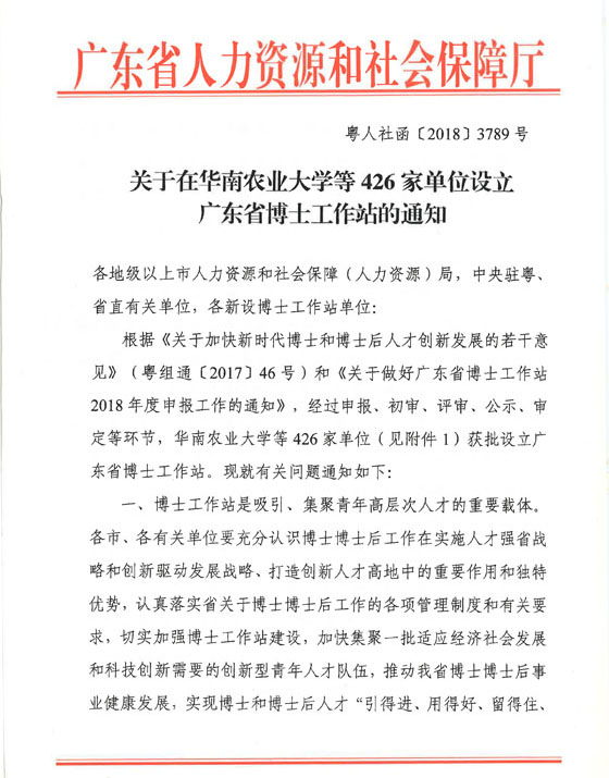 广东省人力资源和社会保障厅关于对2018年广东省博士工作站拟设站单位的公示