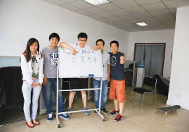 唐皓晨(右一)、惠寅初(右三)和他们的创业团队