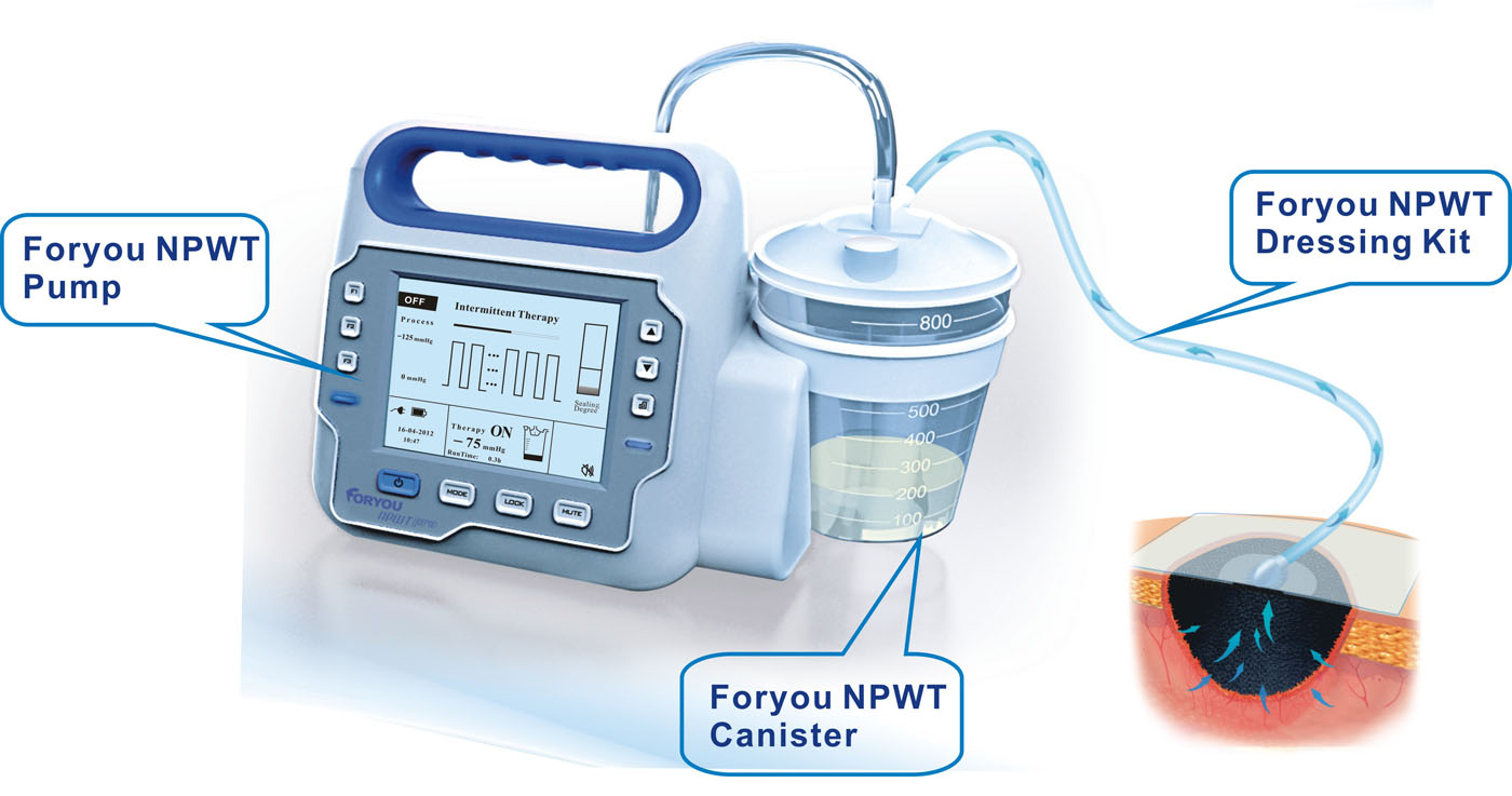 NPWT (Negative Pressure Wound Therapy) applies a localized vacuum to help the healing of the wound while stimulating granulation tissue formation and removing exudate.